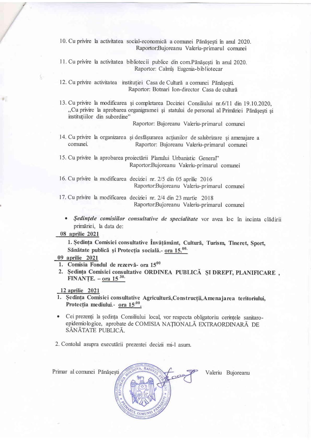 Cu privire la convocarea Consiliului local al com.Panasesti la data de 13 aprilie 2021 ora 15.00 5 aprilie 2021Primăria PănășeștiComments (0)