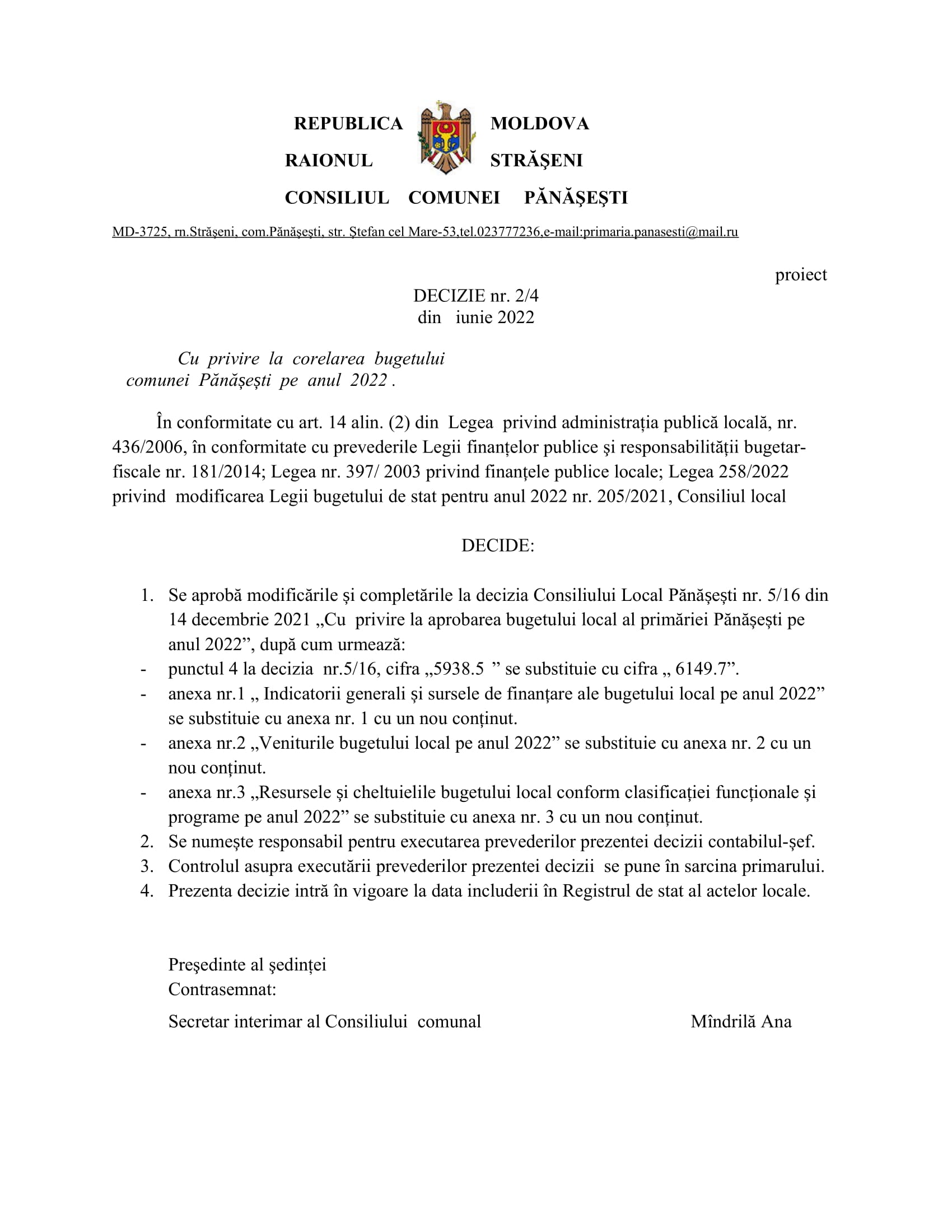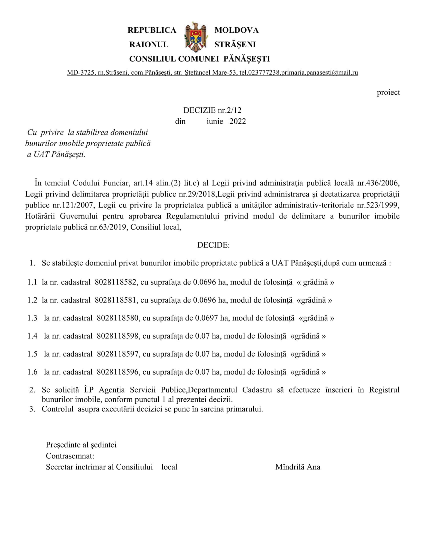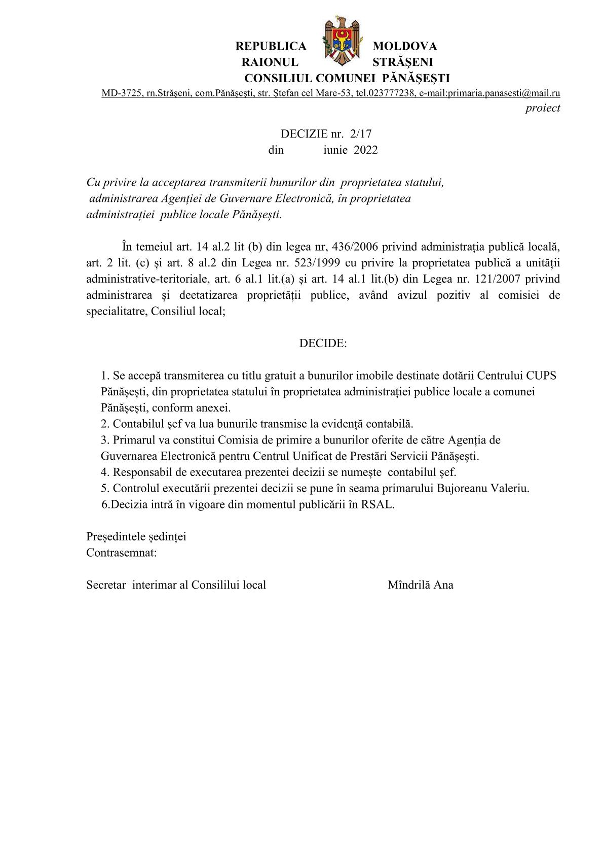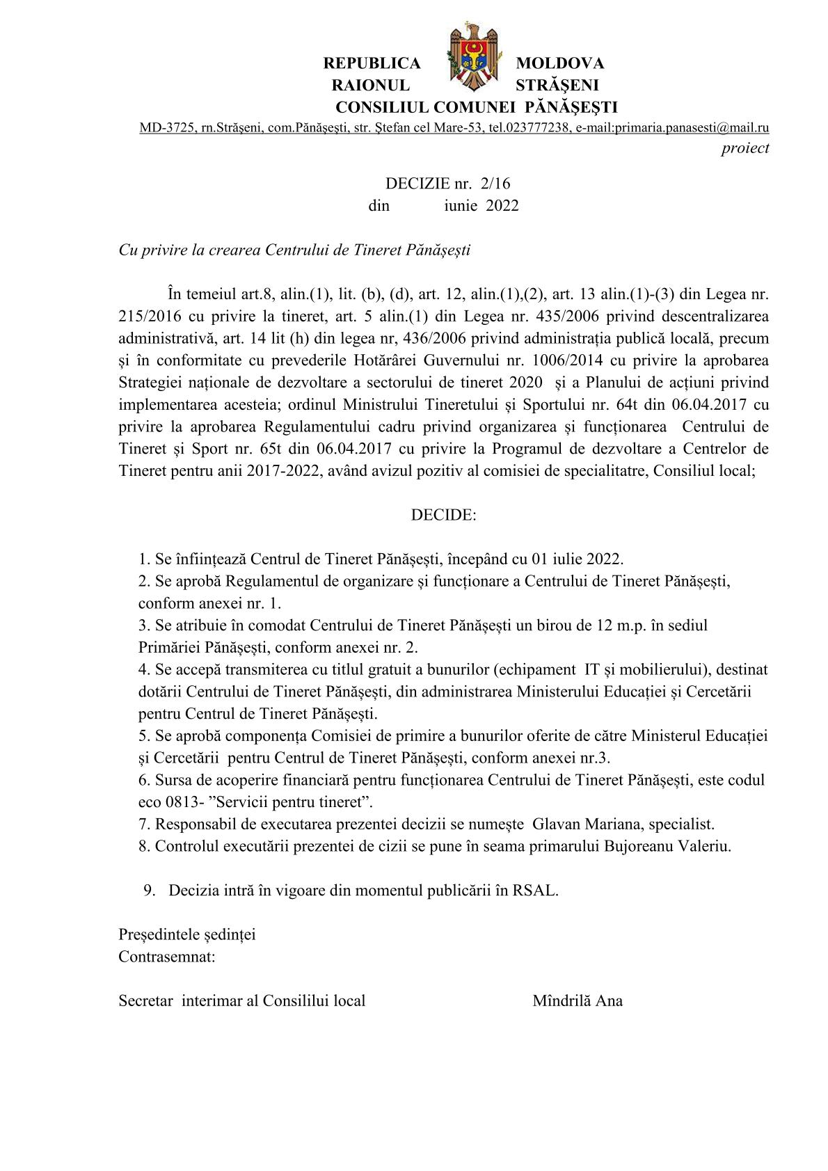 Consultări publice la proiectele de decizii: Așteptăm recomandările până pe data de 09 iunie 2022, cu următoarea ordine de zi a proiectelor de decizii de mai jos. 20 mai 2022Primăria PănășeștiComments (0)