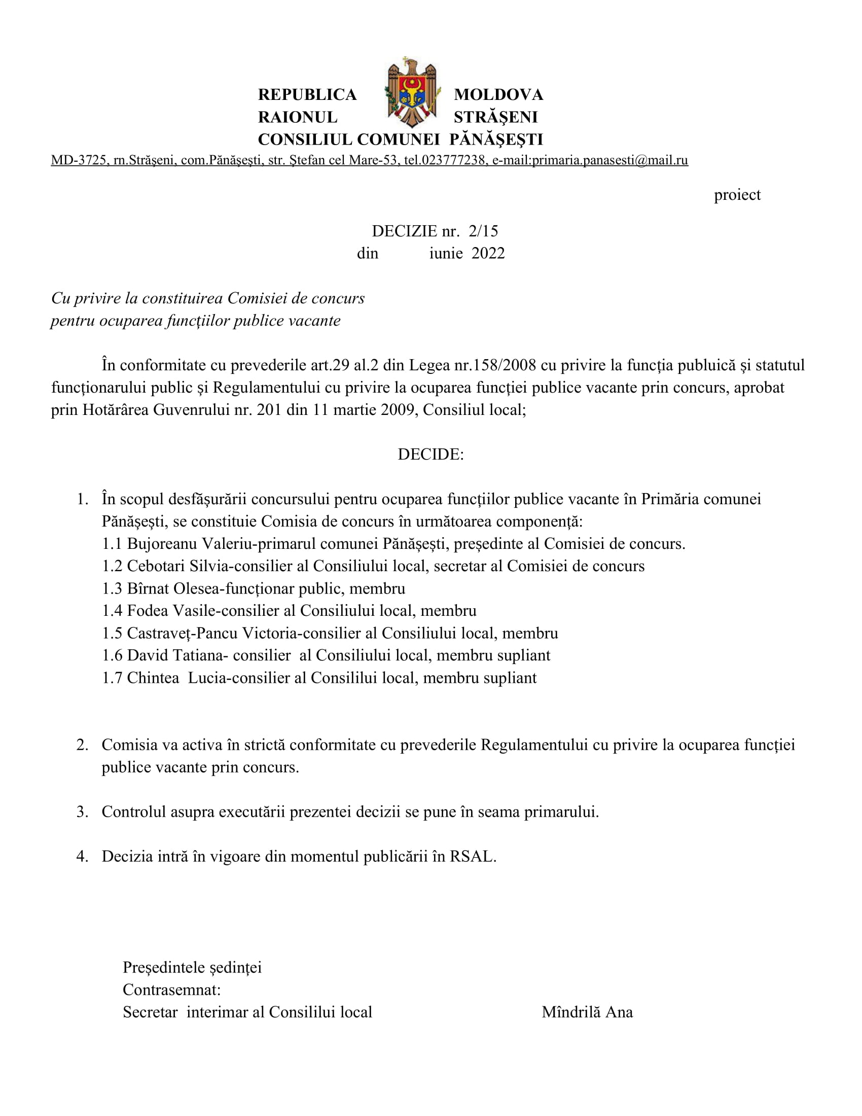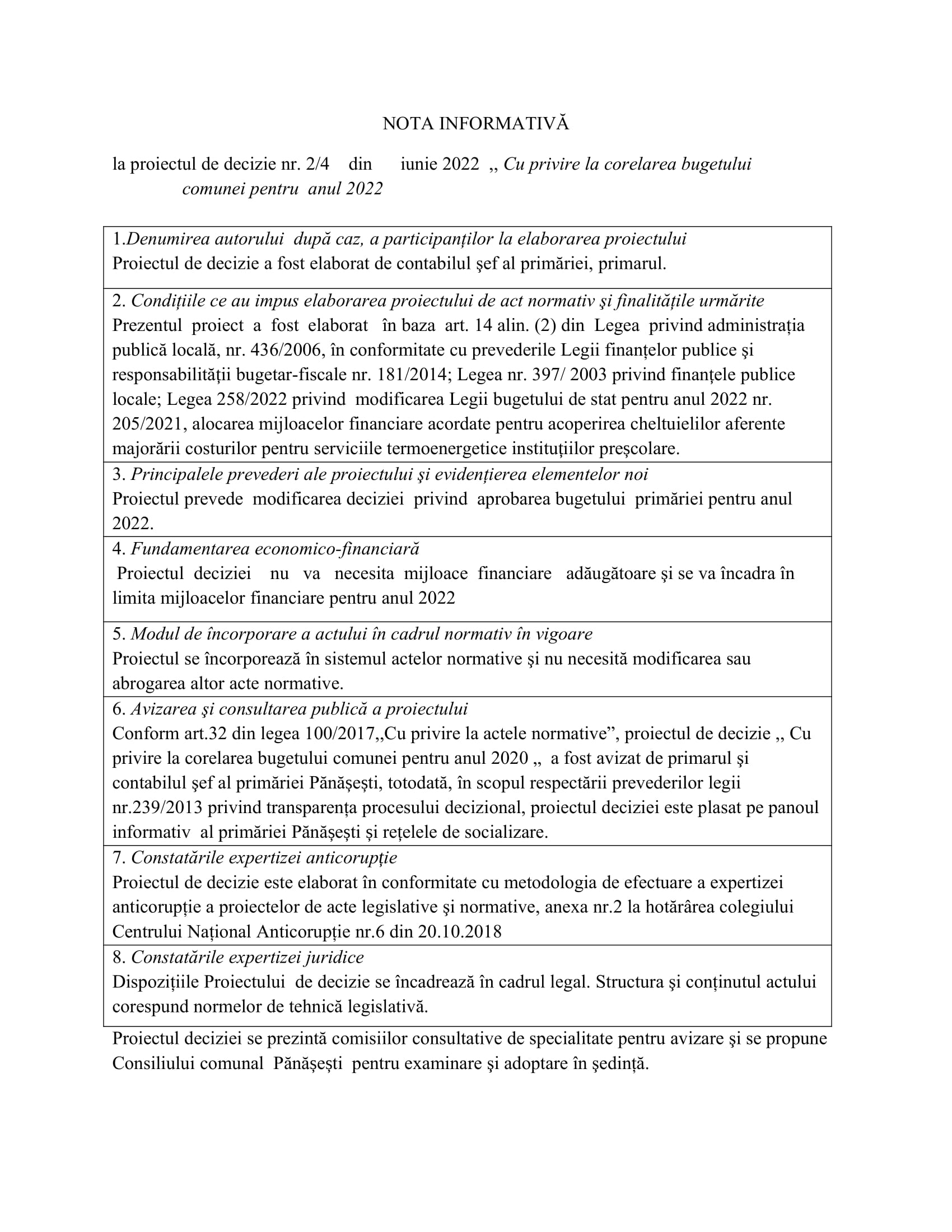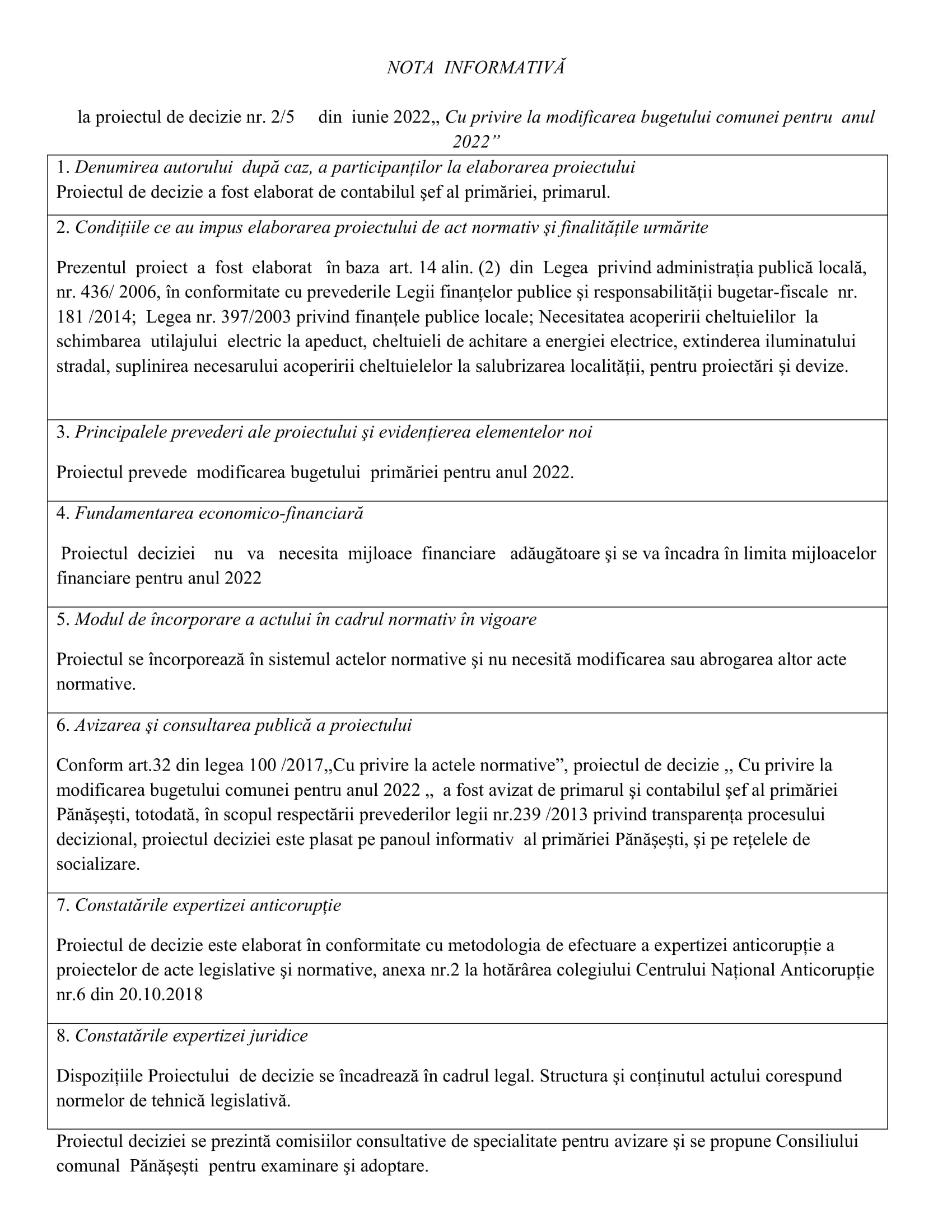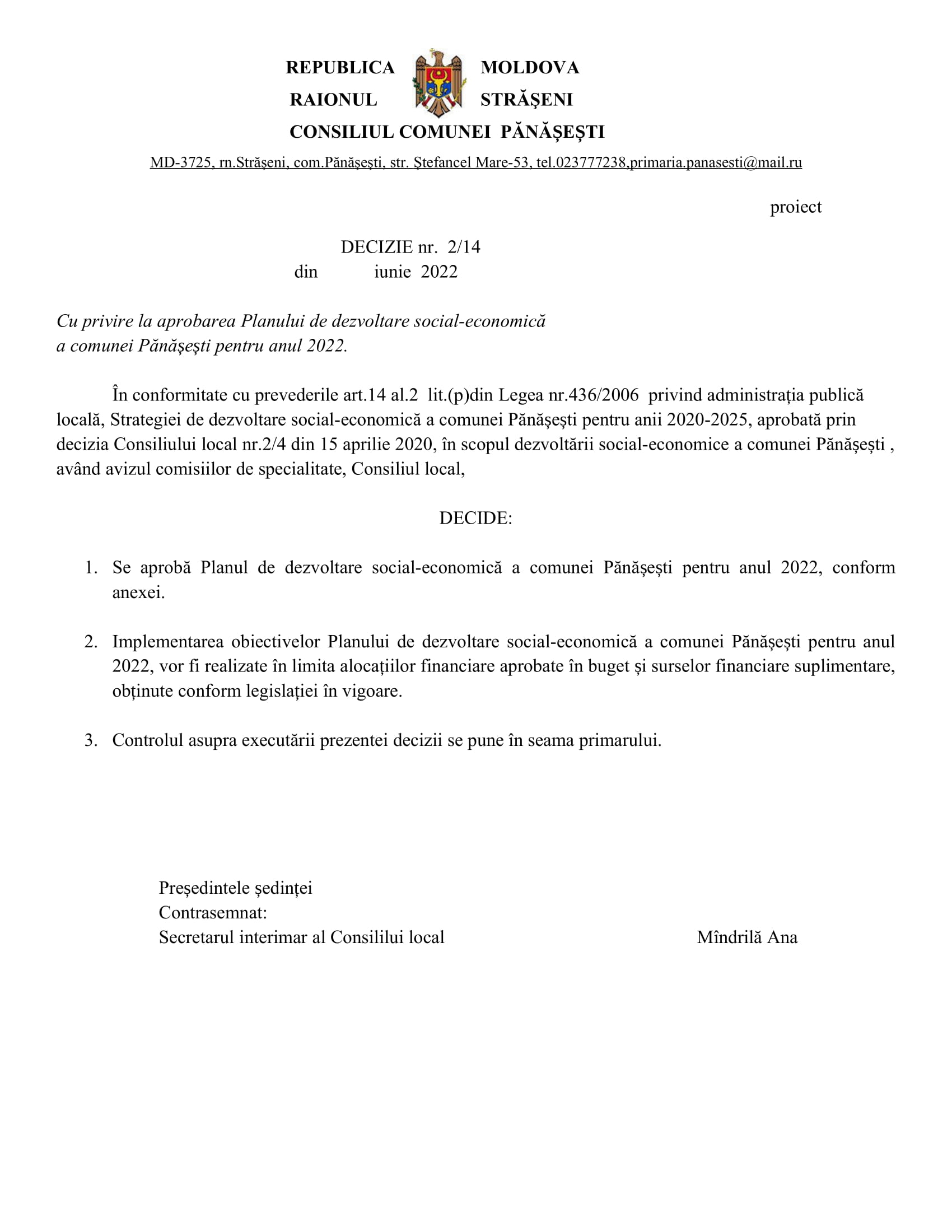 Consultări publice la proiectele de decizii: Așteptăm recomandările până pe data de 09 iunie 2022, cu următoarea ordine de zi a proiectelor de decizii de mai jos. 20 mai 2022Primăria PănășeștiComments (0)