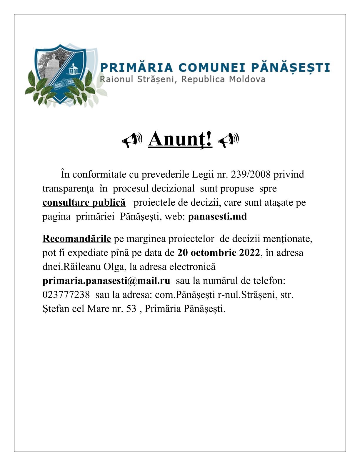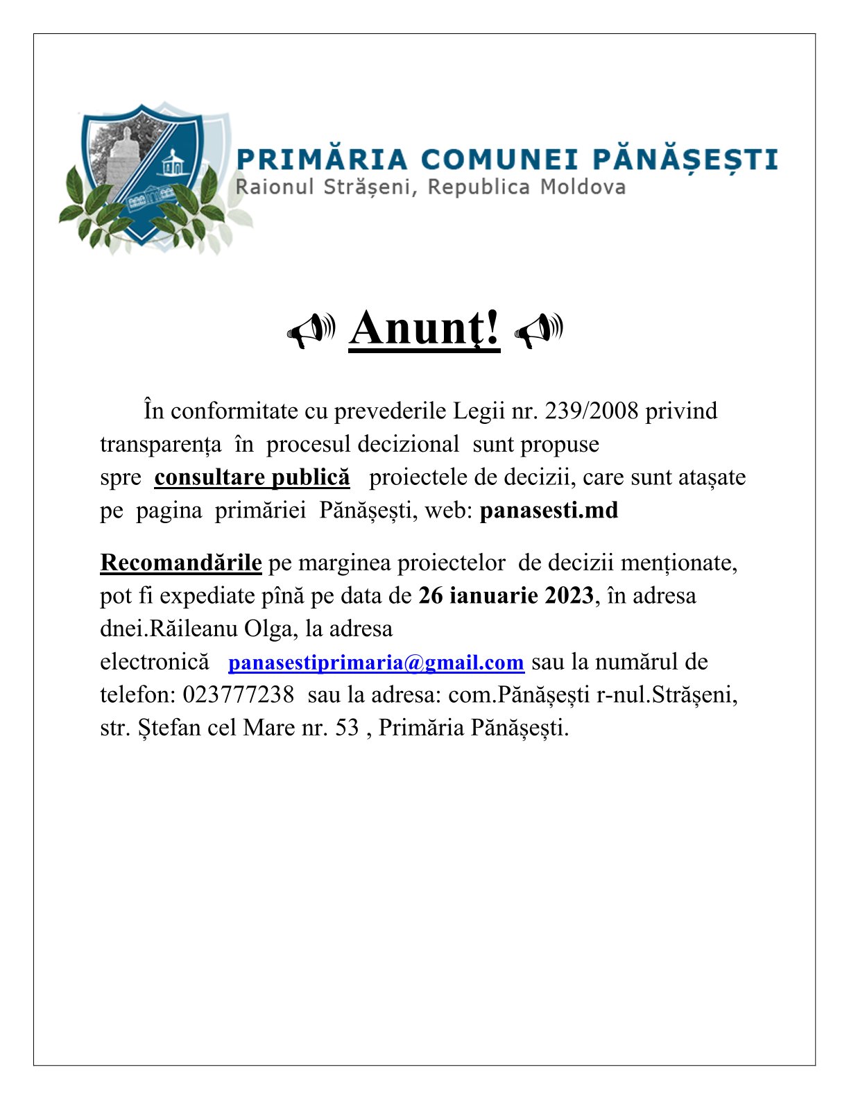 Consultări publice la proiectele de decizii pentru ședința Consiliului