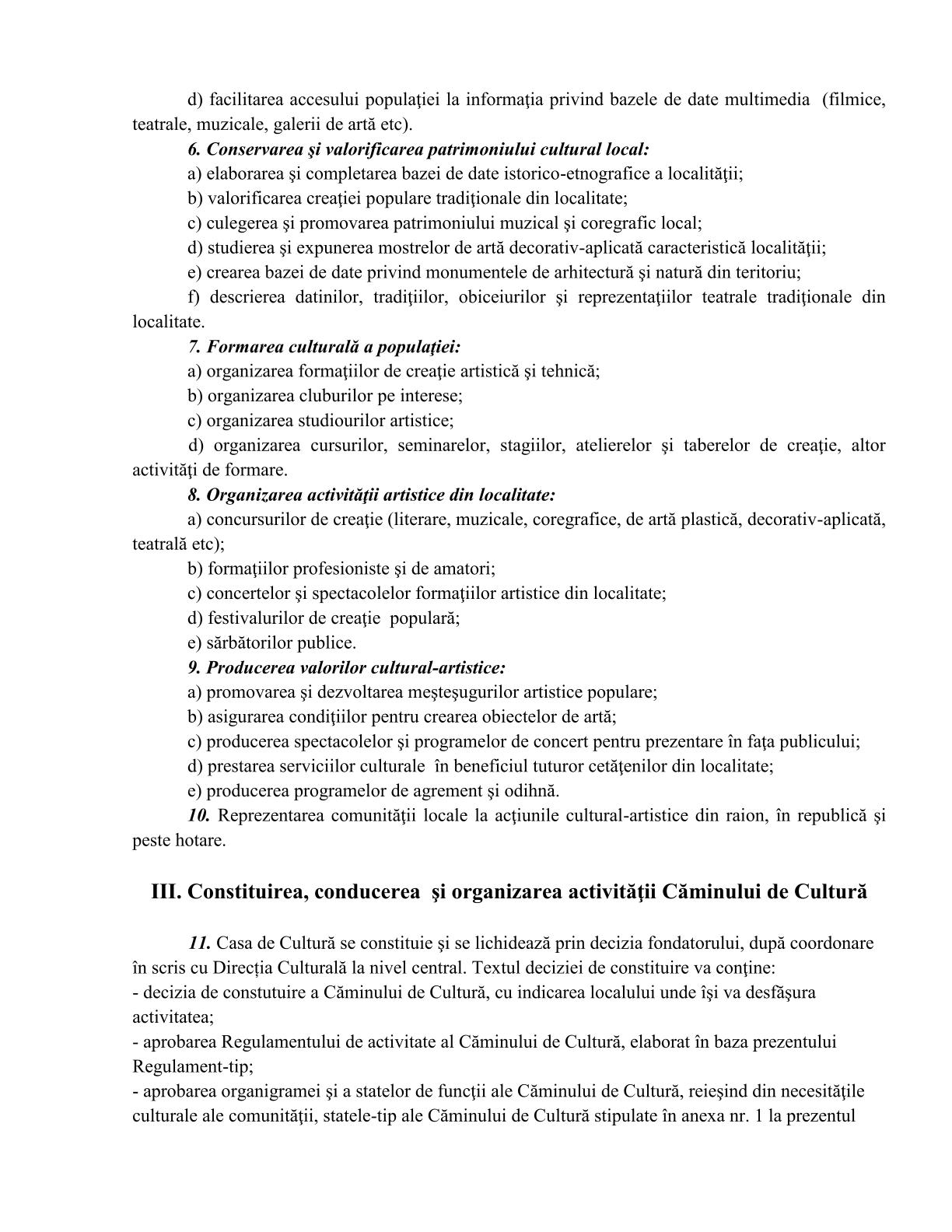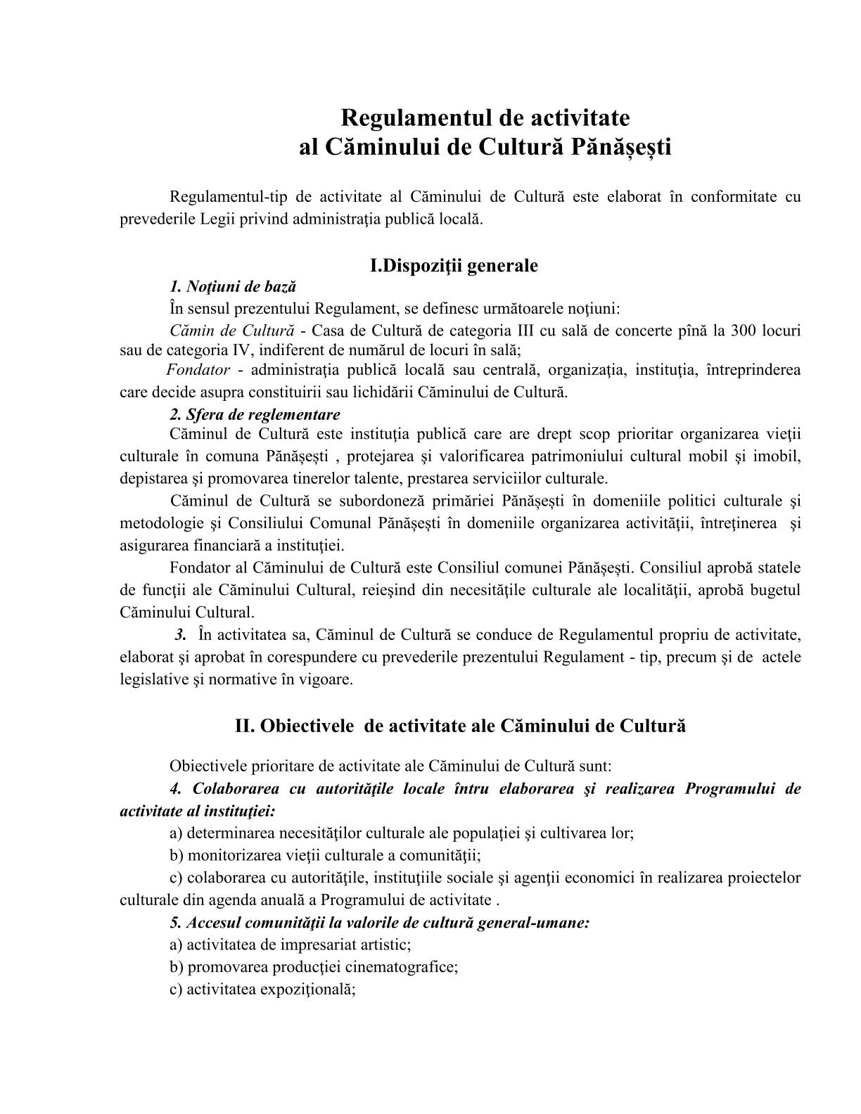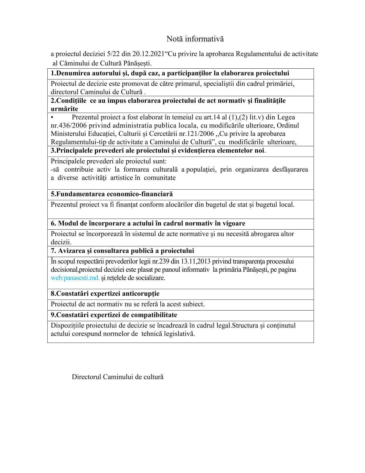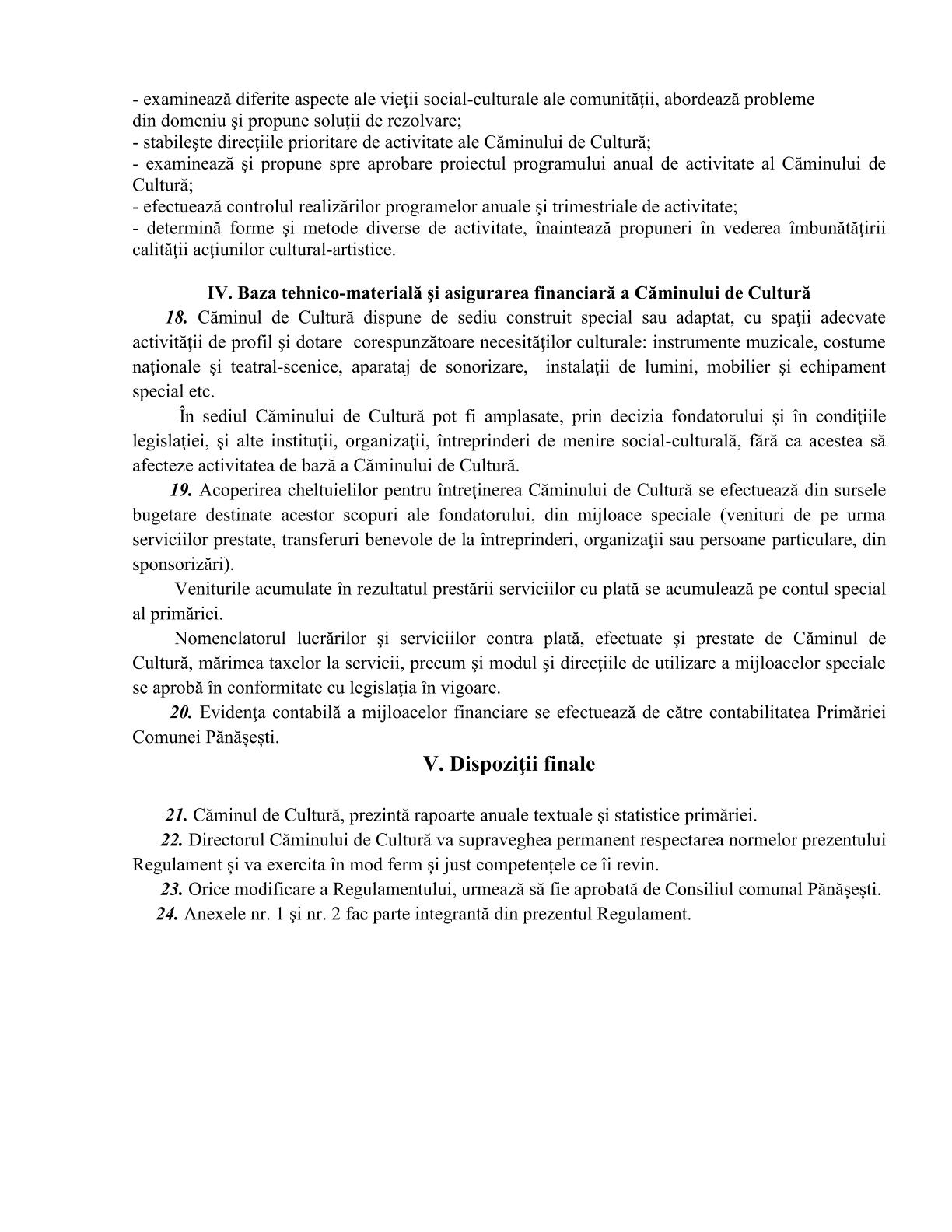 Cu privire la aprobarea Regulamentului de activitate al Căminului de Cultură Pănășești. 23 noiembrie 2021Primăria PănășeștiComments (0) 3