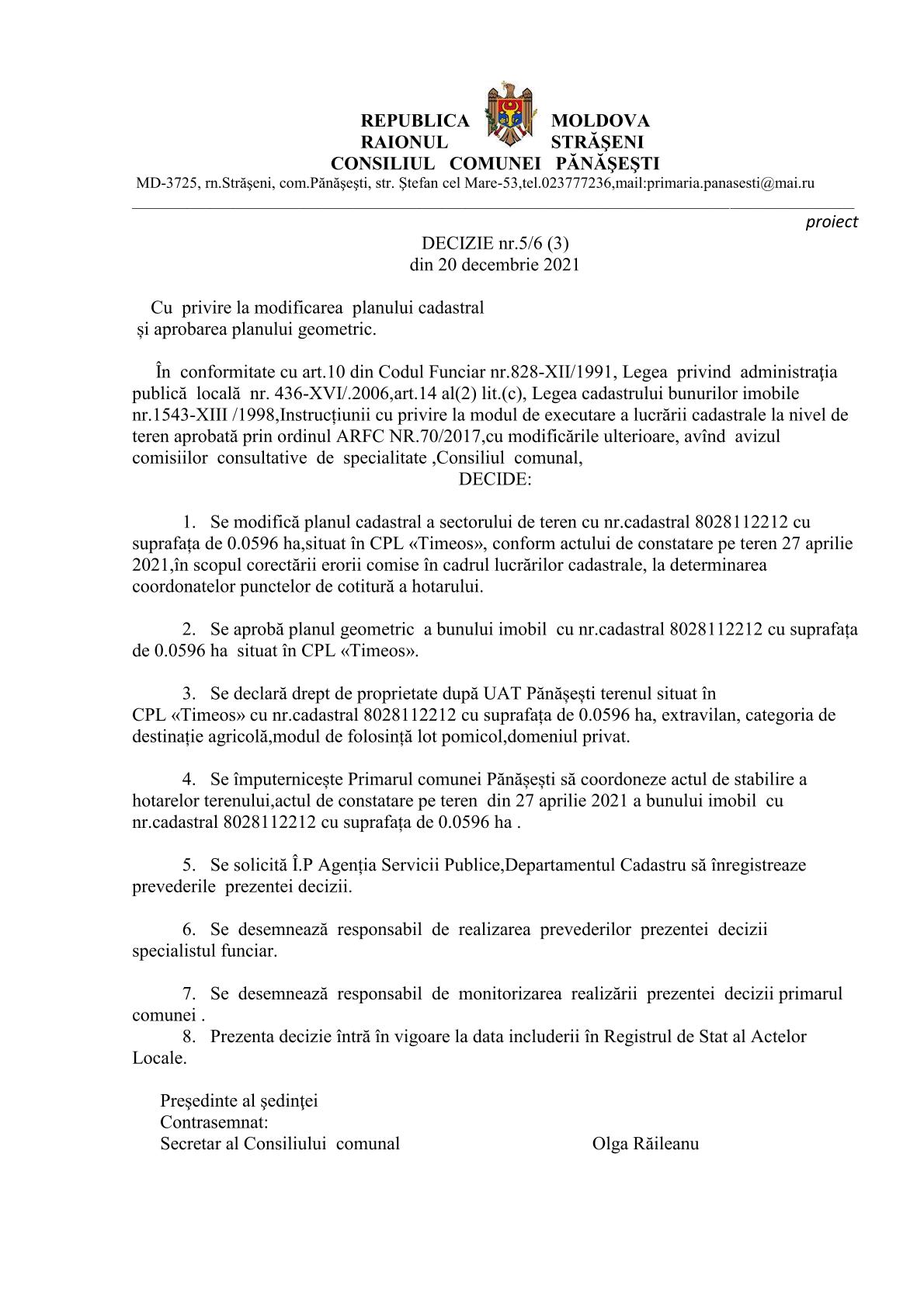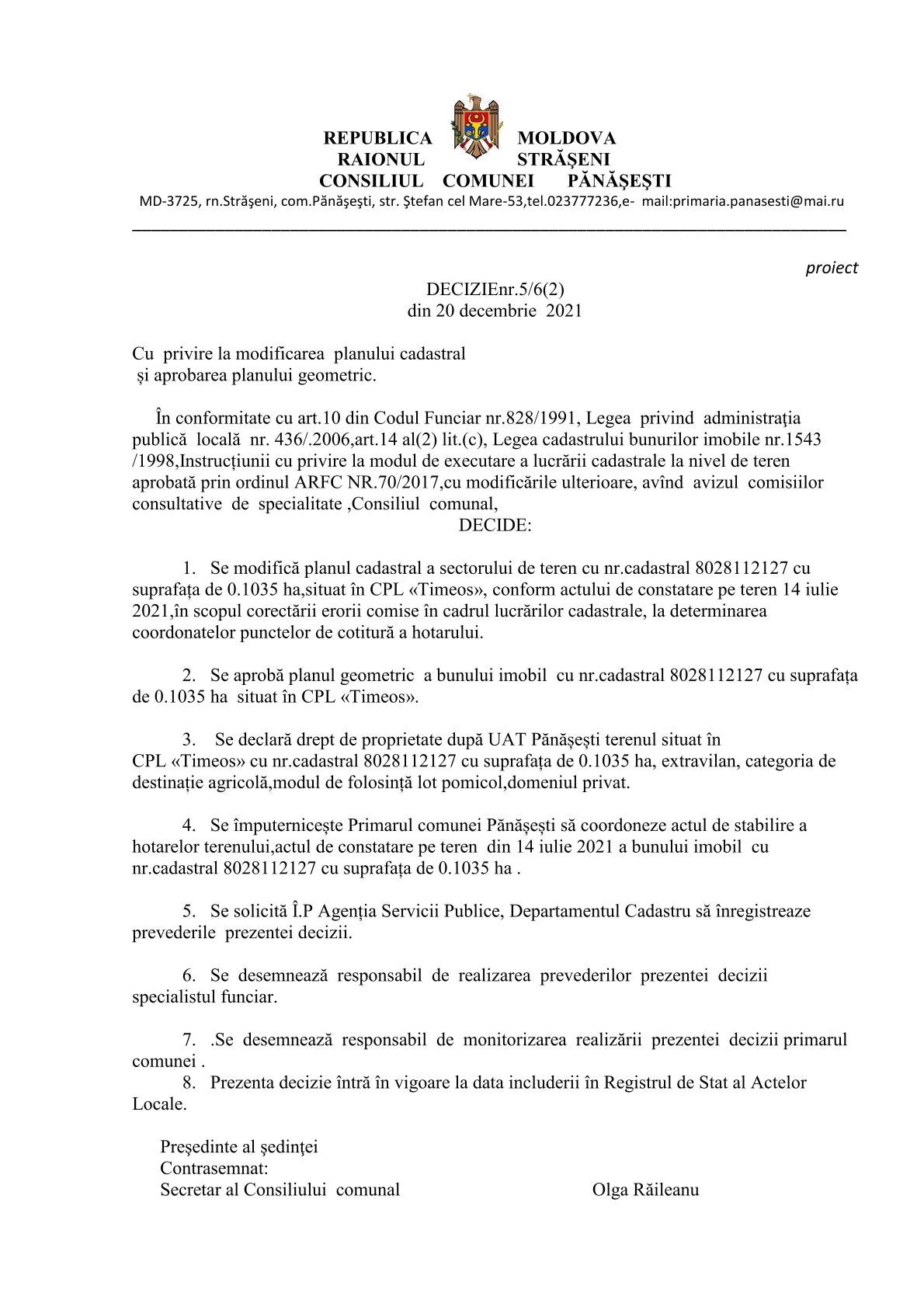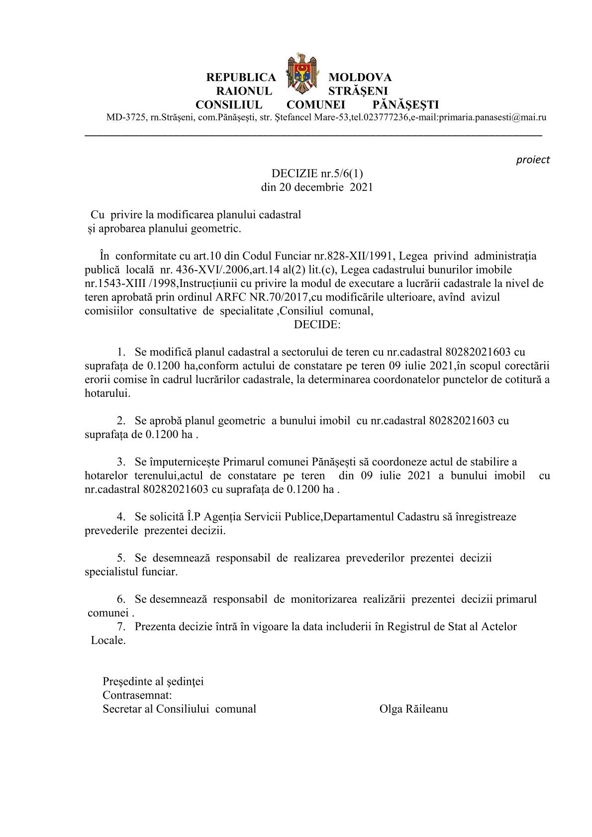 Cu privire la modificarea planului cadastral și aprobarea planului geometric. 23 noiembrie 2021Primăria PănășeștiComments (0)