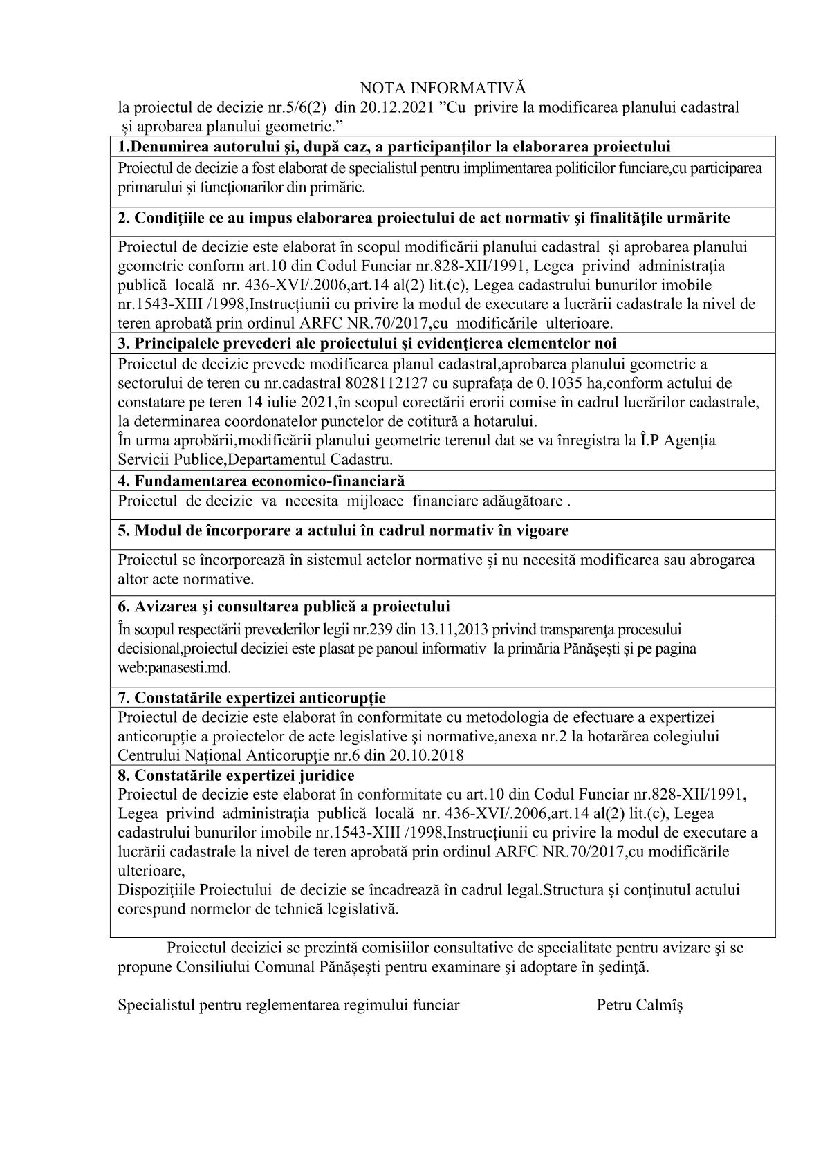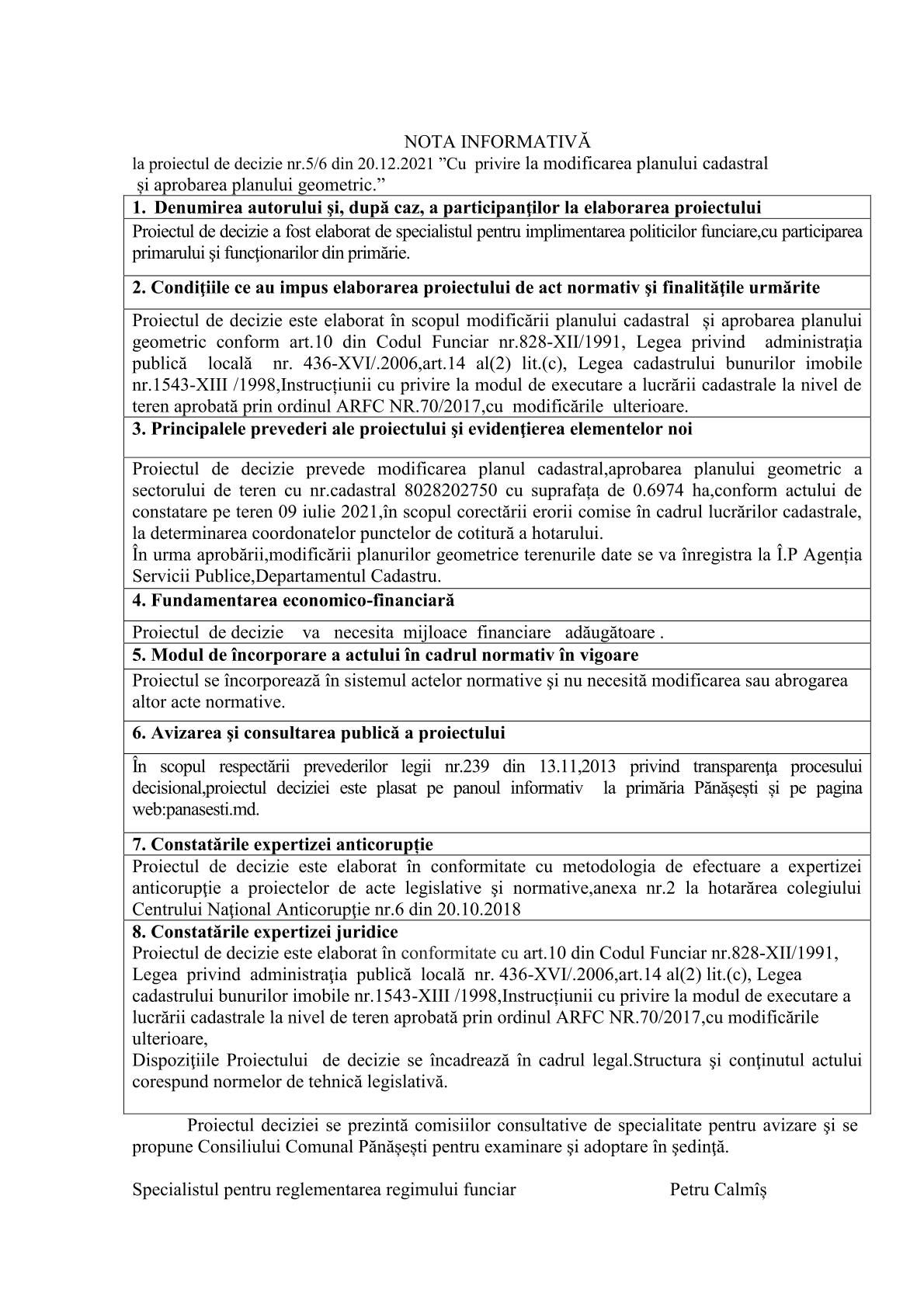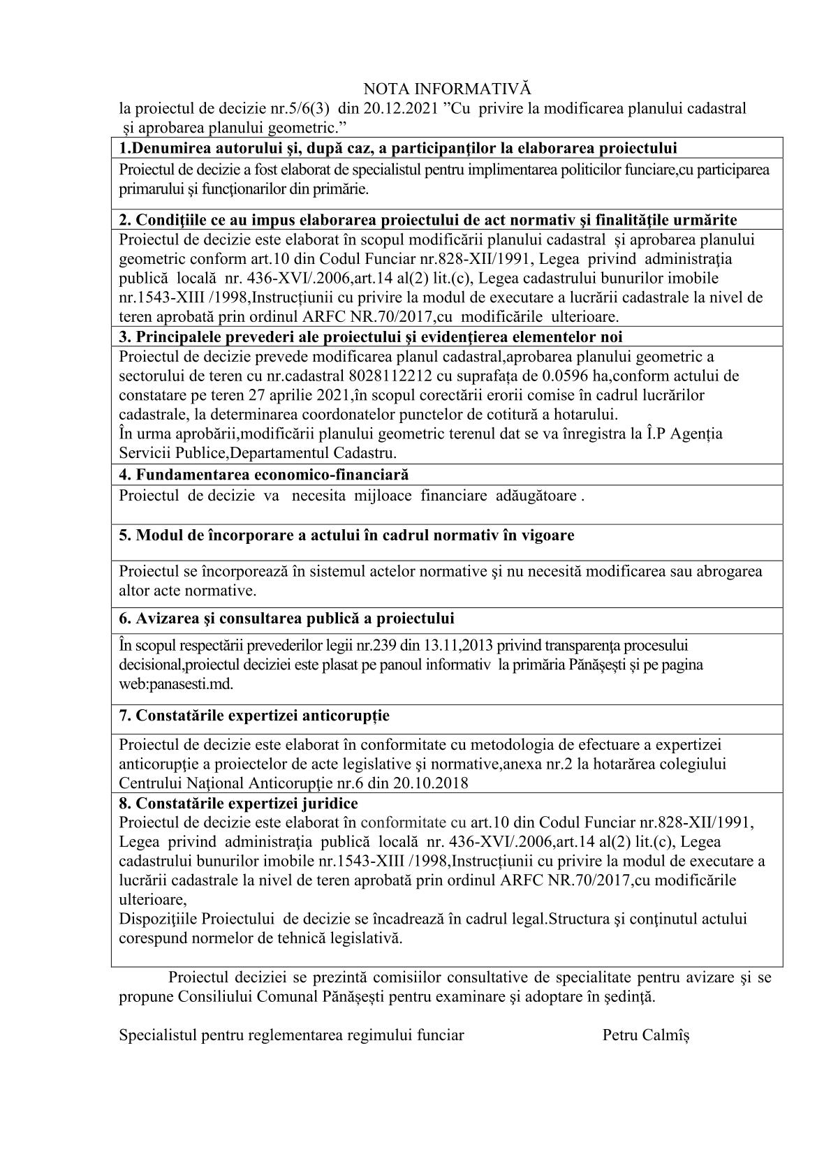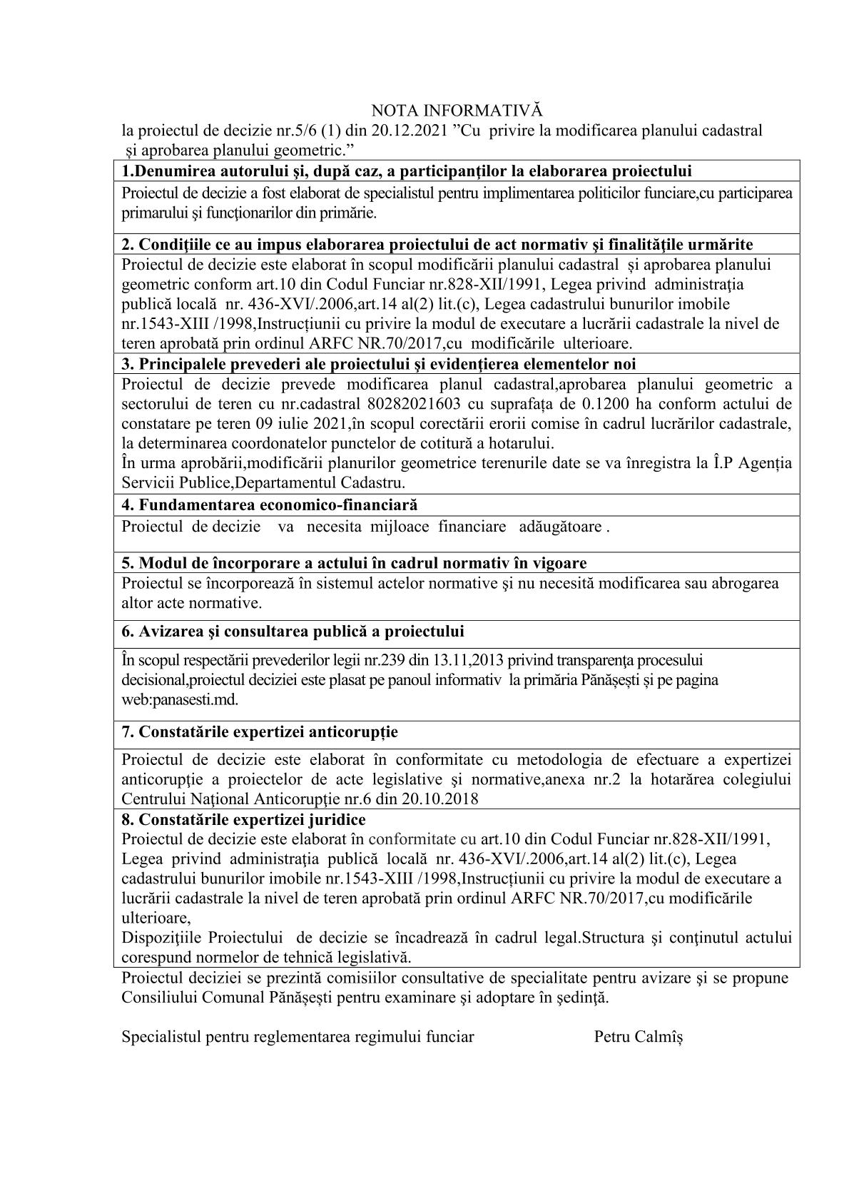 Cu privire la modificarea planului cadastral și aprobarea planului geometric. 23 noiembrie 2021Primăria PănășeștiComments (0)
